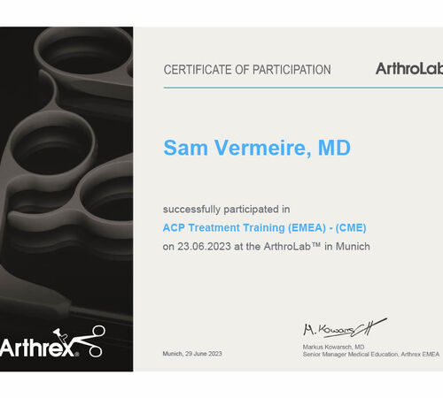 - Tijdens deze consultatie wordt aan de hand van het klinisch onderzoek en de vooraf bekomen beeldvorming (MRI) de indicatie voor deze procedure, alsook de revalidatie besproken.
